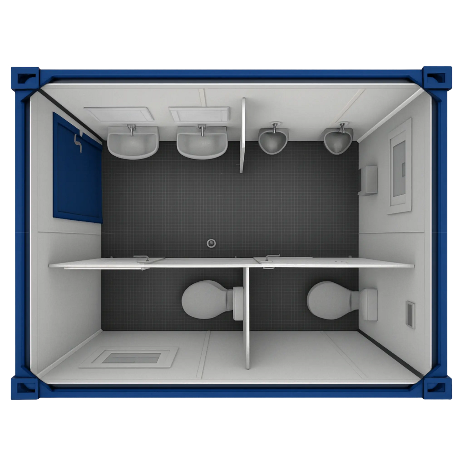 Der Container entspricht der deutschen Elektro- und DIN-Norm und kann flexibel per Kran oder Stapler bewegt werden. Durch die modular aufgebaute Konstruktion lässt sich der Sanitärcontainer problemlos mit einem Fäkalientank erweitern. Ideal als WC-Lösung für Baustellen, Industrieanlagen, Events, Lagerflächen oder temporäre Einsatzbereiche. Der Anschluss vor Ort erfolgt einfach über CEE-Anschluss.