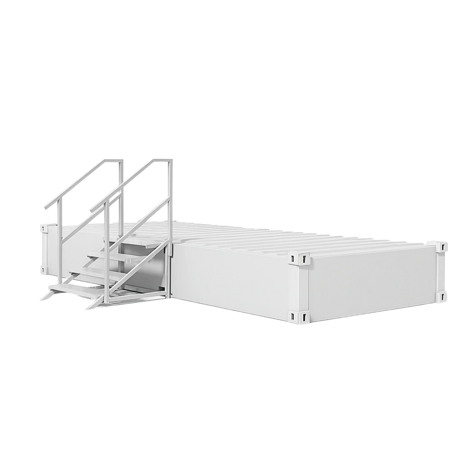 Unsere stabile Aufgangstreppe ermöglicht einen sicheren und komfortablen Zugang zu Sanitärcontainern oder anderen erhöhten Containereinheiten. Die Treppe ist aus verzinktem Stahl gefertigt, rutschhemmend und für den Außeneinsatz geeignet – ideal für Baustellen, Veranstaltungen oder temporäre Anlagen mit Fäkalientanks.