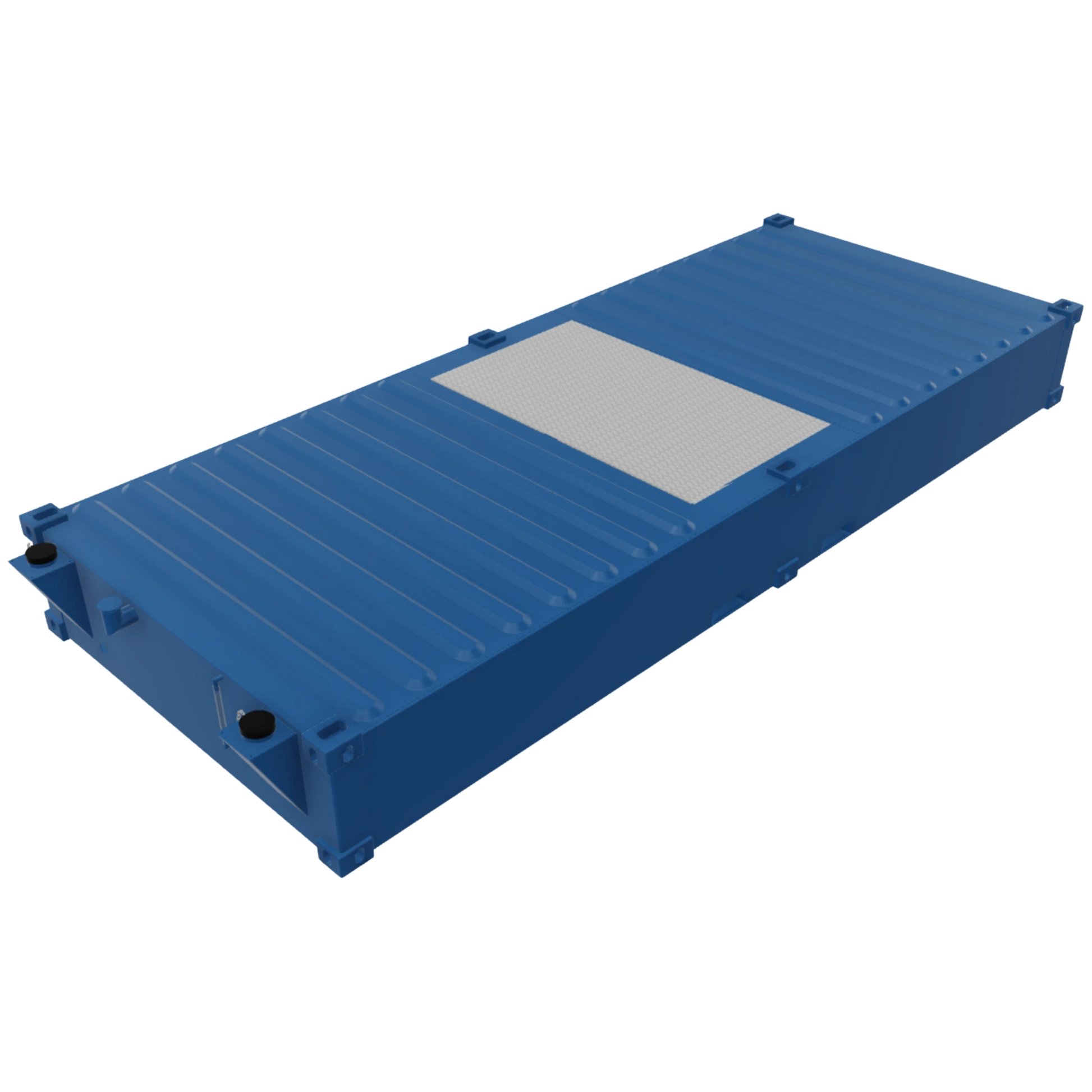 Die geringe Bauhöhe von nur 690 mm erlaubt eine praktische Positionierung unter Sanitärcontainern oder seitlich an Containeranlagen. Dank robuster Stahlrahmenkonstruktion und 950 mm Staplertaschenabstand ist eine flexible Platzierung per Stapler oder Kran problemlos möglich. Die Oberfläche ist in RAL 5010 enzianblau oder RAL 9010 reinweiß lackiert – korrosionsbeständig und leicht zu reinigen.