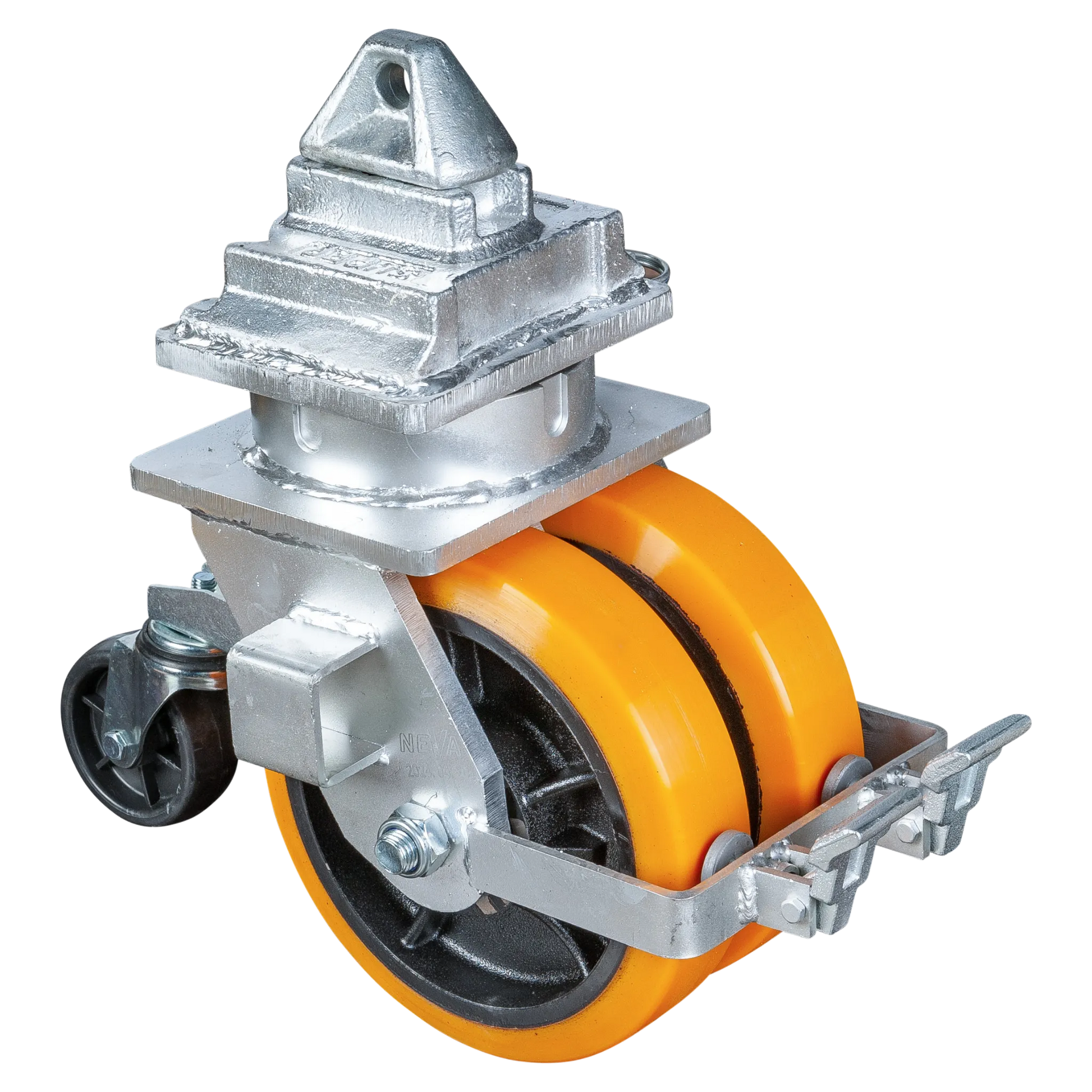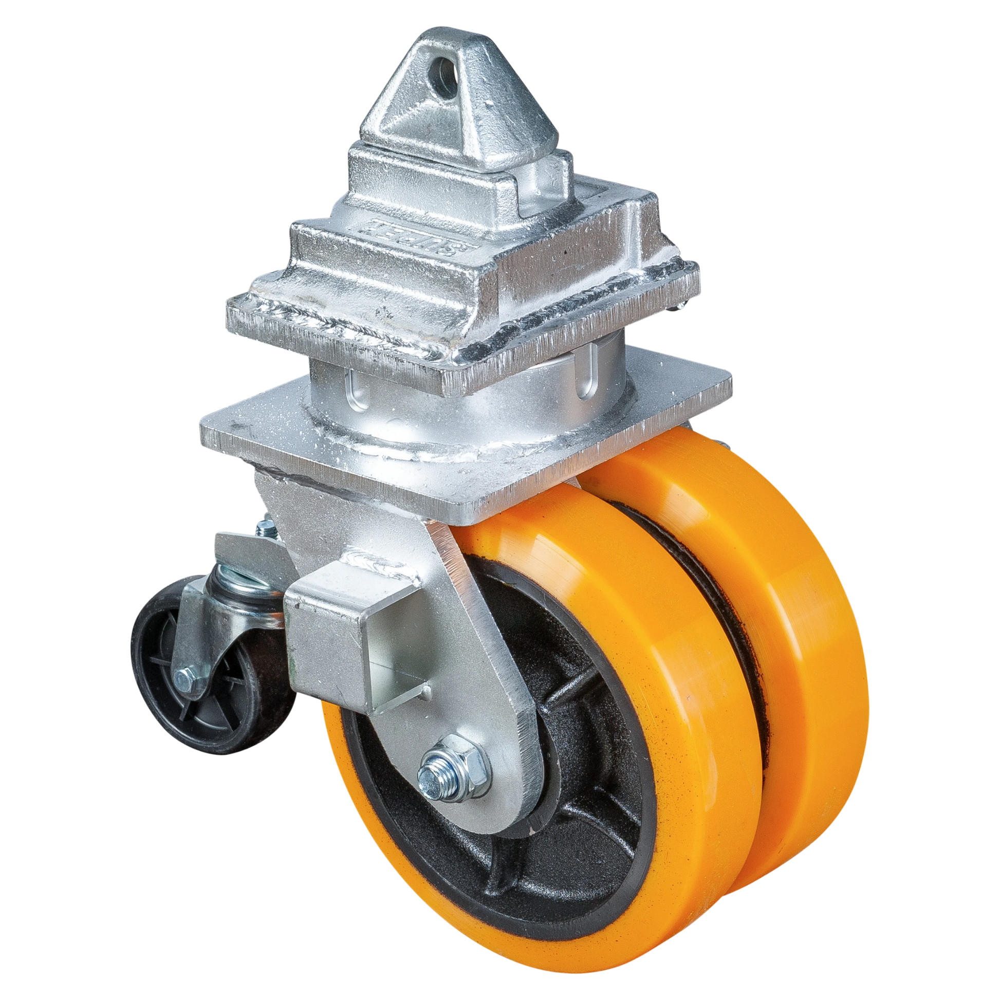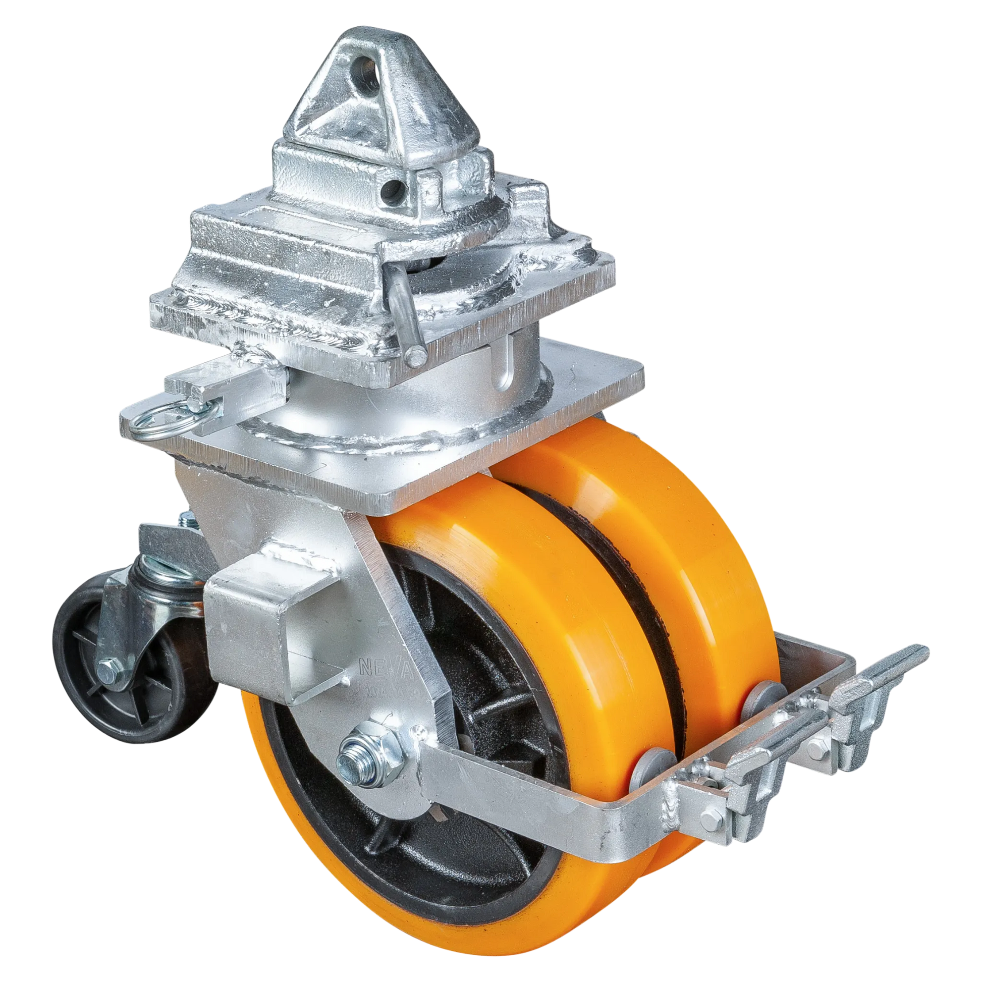 Mit einer statischen Tragfähigkeit von 12.000 kg pro Satz und einer dynamischen Tragfähigkeit von 9.000 kg bei 6 km/h ist dieses Rollenset speziell für schwere Container und industrielle Anforderungen ausgelegt. Die integrierten Doppelkugellager gewährleisten einen gleichmäßigen, leichtgängigen Lauf auch unter Volllast.