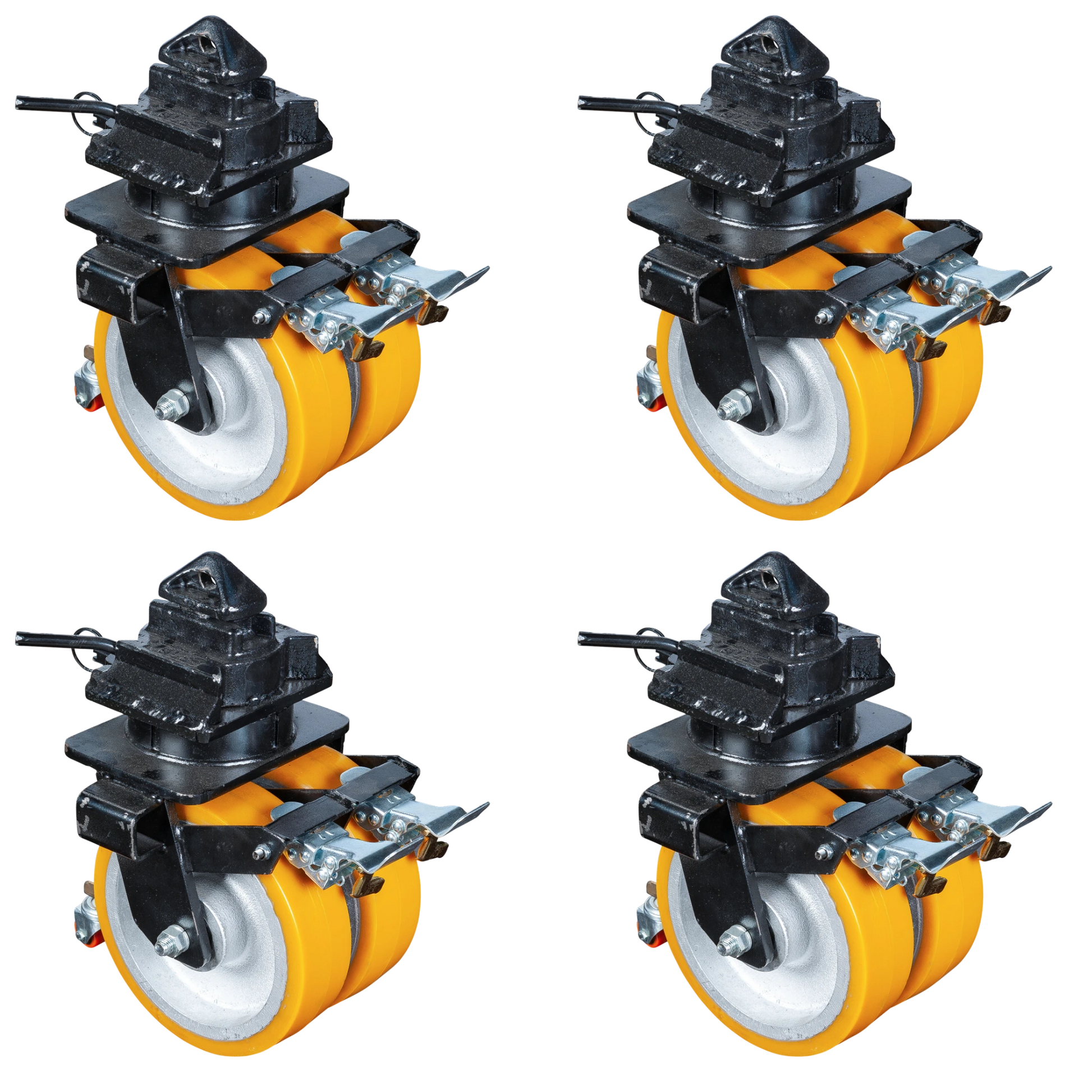 Mit vier Lenkrollen mit Feststeller bietet dieses Set maximale Kontrolle beim Rangieren und Abstellen deines Containers auf glatten Hallen- oder Werkstattböden.